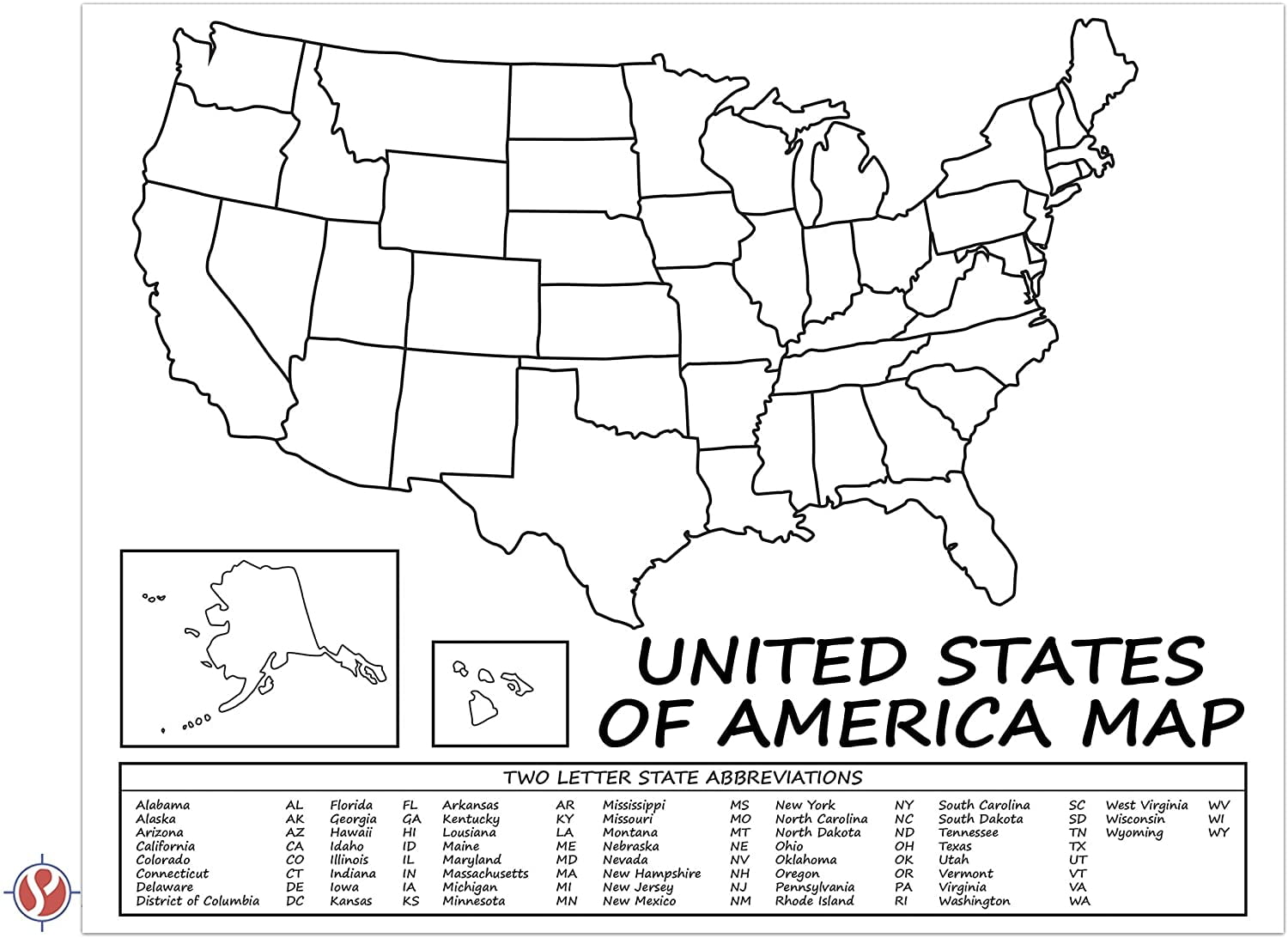 United States Map Usa Poster Us Educational Map With 2 Letter State Abbreviation For All Ages Kids To Adults Home School Office Printed On 110lb Cardstock